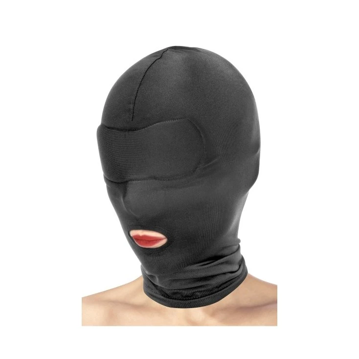 La cagoule d’inspiration SM est conçue pour recouvrir entièrement la tête à l’exception de la bouche. La partie qui recouvre les yeux est renforcée afin de plonger l’être aimé dans le noir le plus profond.