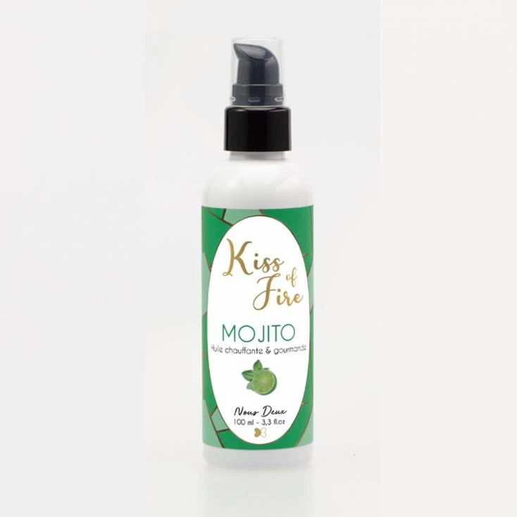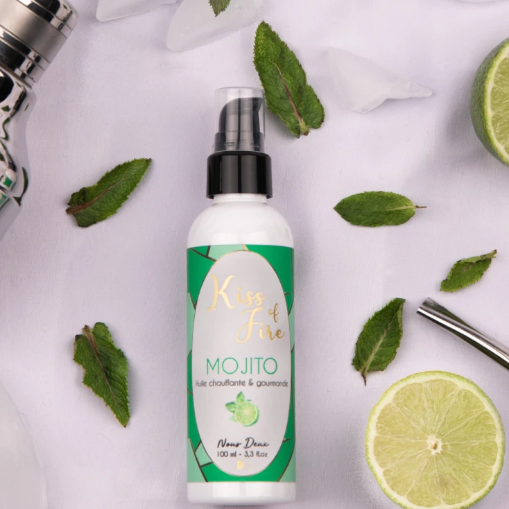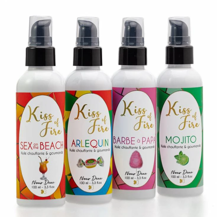 L’huile de massage gourmande & chauffante ‘Kiss of Fire’ est une création de la marque française Nous Deux.