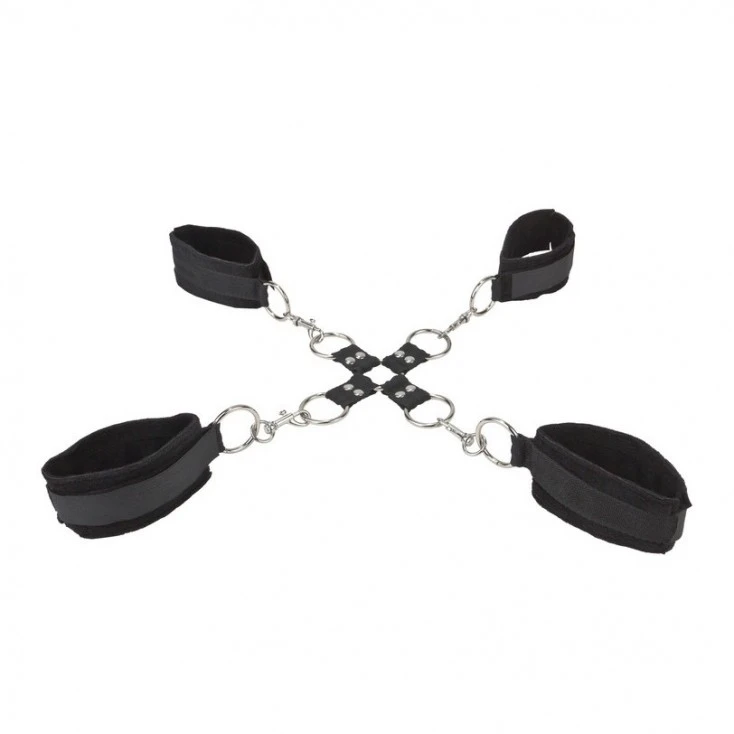 Ces élégantes menottes chevilles et poignets polyvalentes et résistantes sont munies de 4 sangles en fourrure synthétique à poils ras reliées entre elles par un ensemble d’anneaux et mousquetons métalliques. Chaque sangle comporte une bande velcro pour s’adapter rapidement et facilement à tous les poignets ou chevilles.