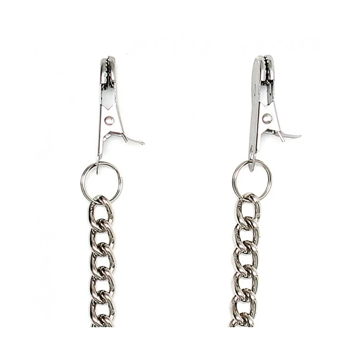 • Chaîne métallique à maillons moyens, petites pinces à seins en métal.